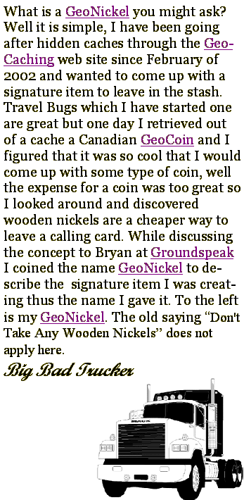 GeoNickel Website | Directory of Related Links | My Adventures in GeoCaching | How To Create GeoNickels